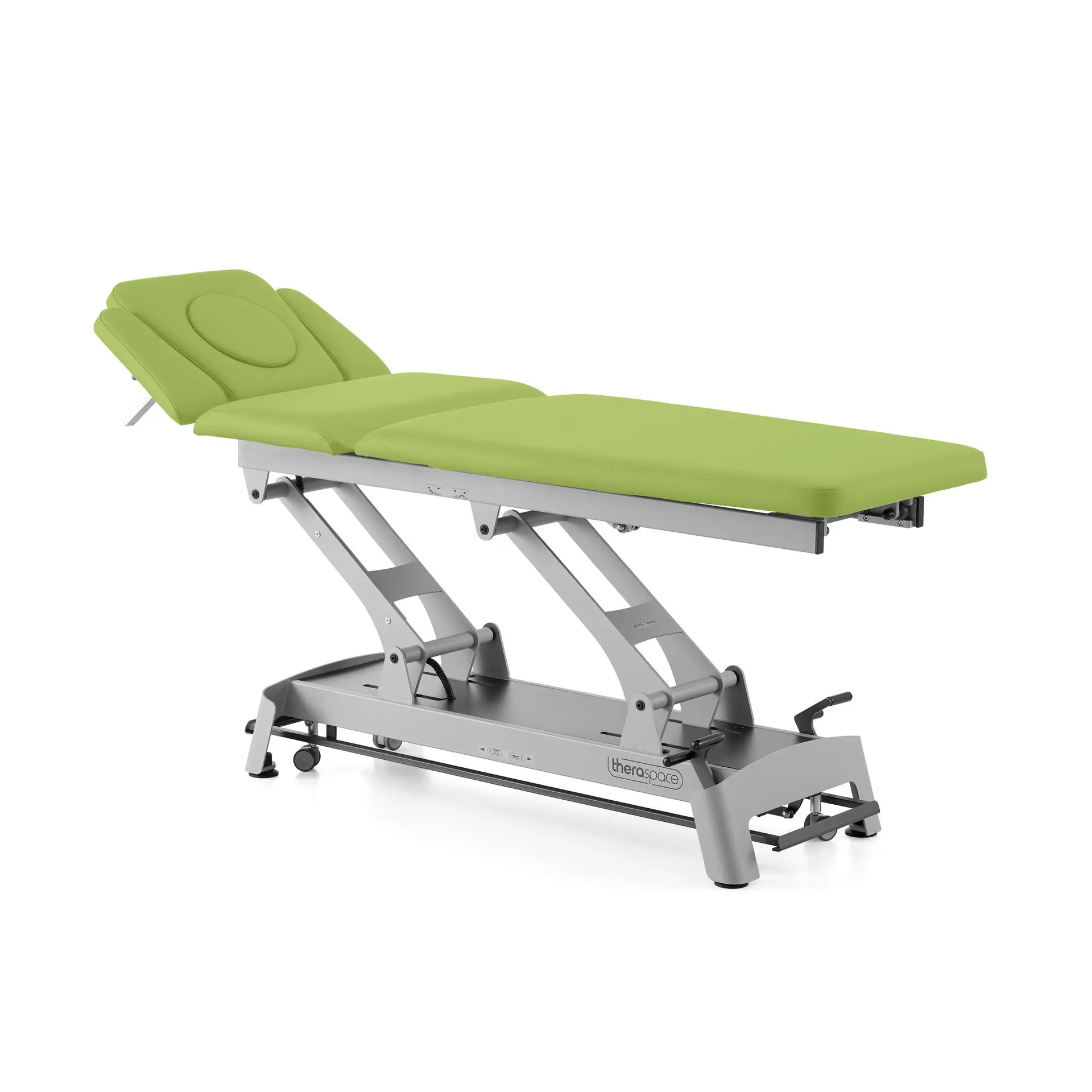 The Theraspace massage table is designed for performing manual massage treatments to treat and alleviate traumas or disabilities by restoring or improving the function of massaged tissues, organs and systems. The clinical benefits of massage tables are based on the fact that it is possible for the patient to take the right position for the massage treatment, the possibility to adjust the height and/or individual sections of the table, which facilitates the work of the rehabilitator/physiotherapist and increases the comfort of the patient during the massage treatment.